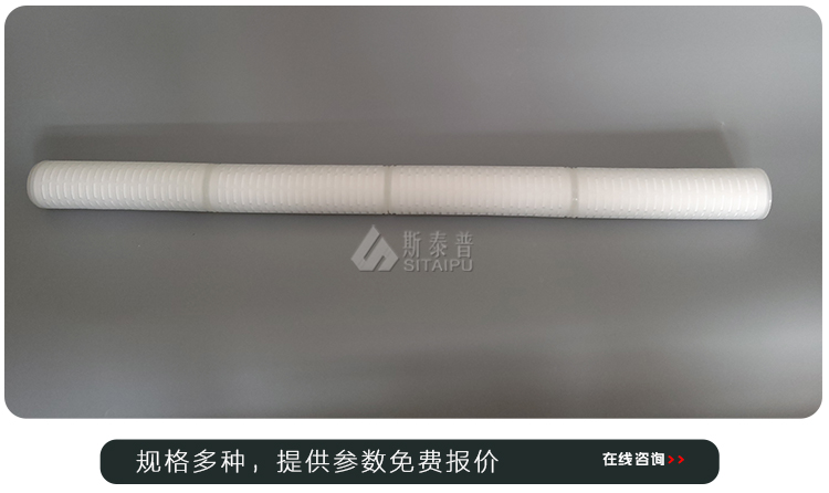 产品简介:40寸折叠滤芯的长度是1000或1016mm,正常值浮动上下2mm,常见应用领域有水处理行业、化工行业、纺织行业、食品行业、医药行业等。折叠滤芯的材料有多种,有(PP聚丙烯,尼龙,聚四氟乙烯,聚偏氟乙烯,聚醚砜等等)常见的是聚丙烯材料的,它具有面积大,纳污量多,压力差低,使用寿命长等特点。