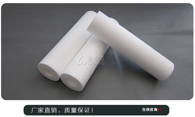 产品简介:10寸PP棉滤芯长度为250或254mm,滤芯采用外疏内密的渐变式结构,更容易捕捉液体微粒杂质,达到深层过滤的效果。熔喷滤芯表面处理方式有深孔沟槽式、针刺结构式以及平面式,目的是为了在不同工况环境下,分散不同压力的水流方向,降低水流阻力。